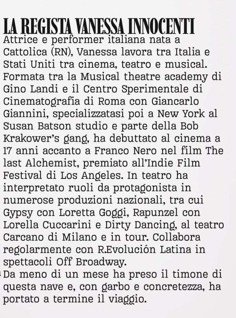 Io ho firmato la REGIA ed è stata un’esperienza intensa e totalizzante, con poco tempo e tante idee per rendere al meglio questo show per la prima volta sul palcoscenico.